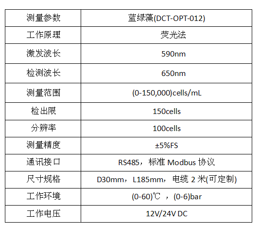 DCT-OPT-012是一款采用RS485通訊接口和標準Modbus協(xié)議,自帶清洗刷的藍綠藻智能電極。基于相干熒光檢測技術,具有選擇性好,抗干擾強、靈敏度高、無需預處理、測量快速等優(yōu)點。隨機附送專業(yè)操作軟件,具有校準、記錄、分析、診斷等功能。